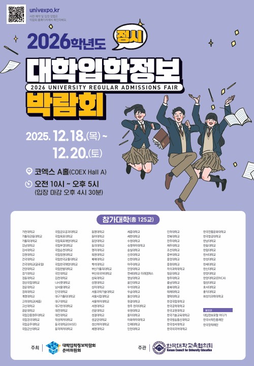 2026학년도 정시 대학입학정보박람회 행사와 관련하여 아래와 같이 안내드리니 많은 관심 부탁드립니다.